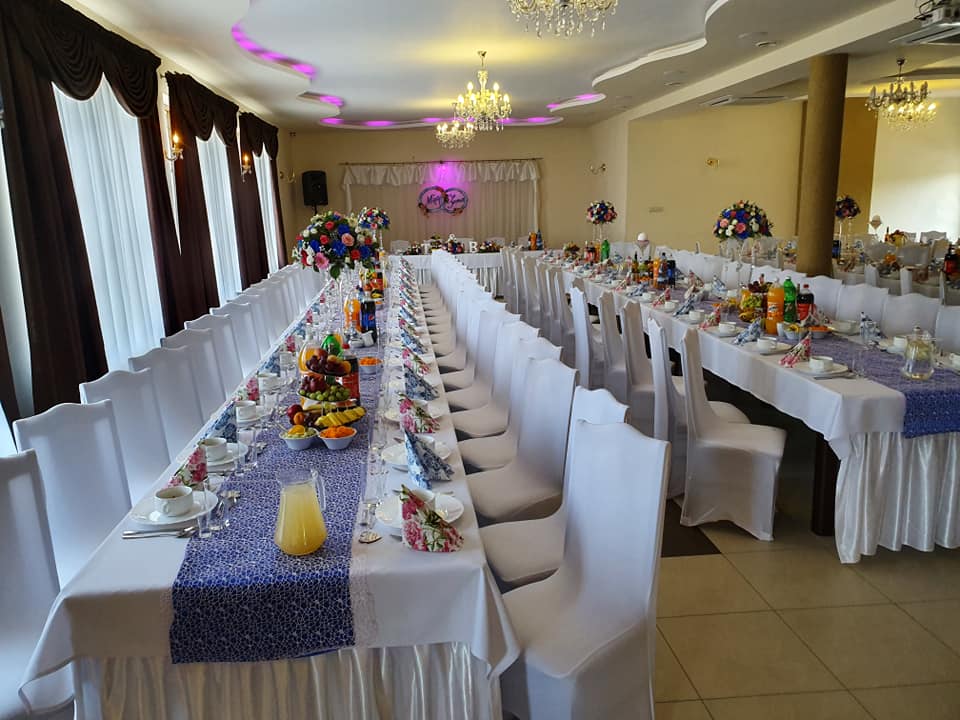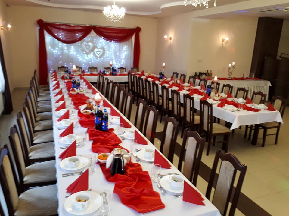 Dysponujemy dużą, przestronną salą, która pomieści zarówno kameralne spotkania, jak i większe przyjęcia.